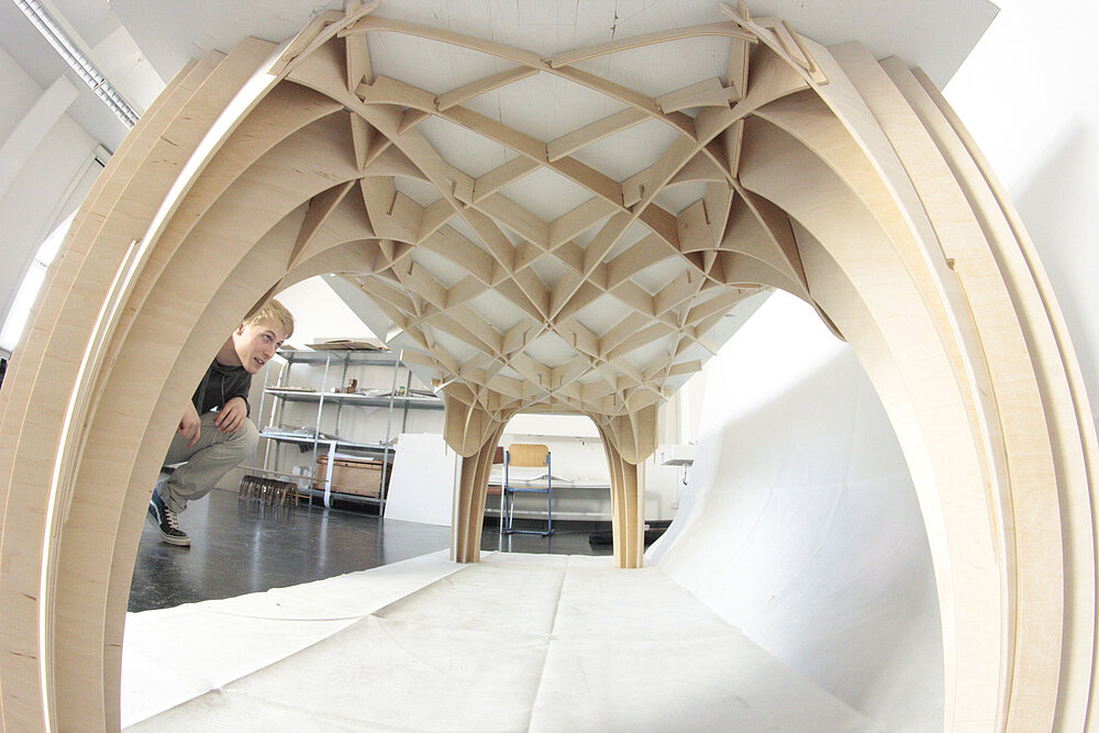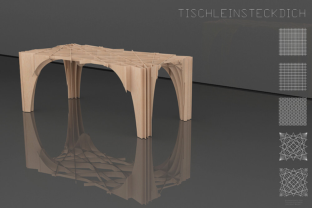 Der Entwurf eines Tischgestells stellt eine immer wiederkehrende, stets nach neuen gestalterischen und technischen Antworten suchende Herausforderung dar. Das Tragwerk eines Tischgestelles besteht materialunabhängig darin, sowohl vertikale, als auch horizontale Lasten aufzunehmen. Dabei gilt es funktional, den Nutzern des Tisches eine möglichst hinreichend große Beinfreiheit zu bieten.