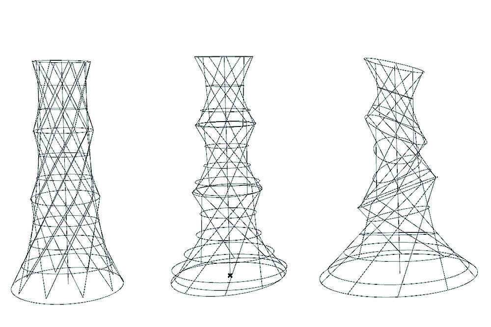 TWISTED basiert auf dem Strukturprinzip eines „Rotationshyperboloiden“ nach Wladimir Schuchow.