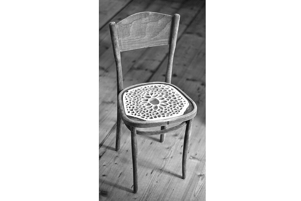 Ziel des Projekts war die Restauration der fehlenden Sitzfläche eines Stuhles mittels eines materialoptimierten flächigen Tragwerkes.