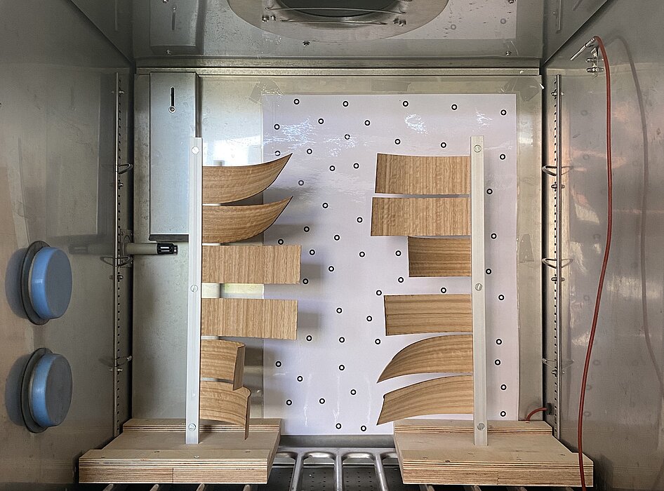 Das Projekt folgt der Idee, die Formveränderungen durch die Kombination zweier Holzfurnierarten maßgeblich zu beeinflussen. Eine schubfeste Verklebung der Furniere als Doppelschicht eröffnet eine Vielzahl möglicher Parameter-Kombinationen (Holzart, Furnierdicke, Faserausrichtung), um zunächst deutlich geringere Streuergebnisse zu erzielen. Der kontinuierliche Austausch des Materials mit dem Umgebungsklima und der geringe Materialverbrauch definieren die Kernelemente für eine nachhaltige und naturbasierte Verschattungslösung. Im Gegensatz zu den meisten bestehenden Technologien können die einzelnen Lamellen einfach ausgetauscht werden. Ziel des Projekts ist die Entwicklung einer klimafreundlichen Fassadenbeschattung als sommerlicher Hitzeschutz zur Minimierung des Einsatzes von Klimaanlagen und zur Verbesserung der CO2-Bilanz.
