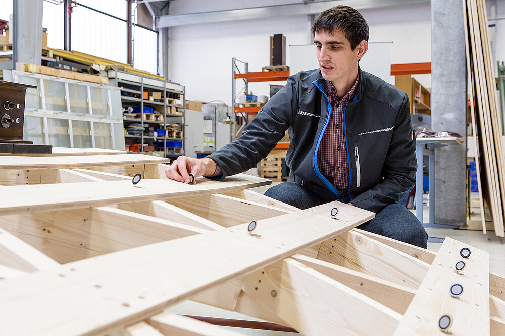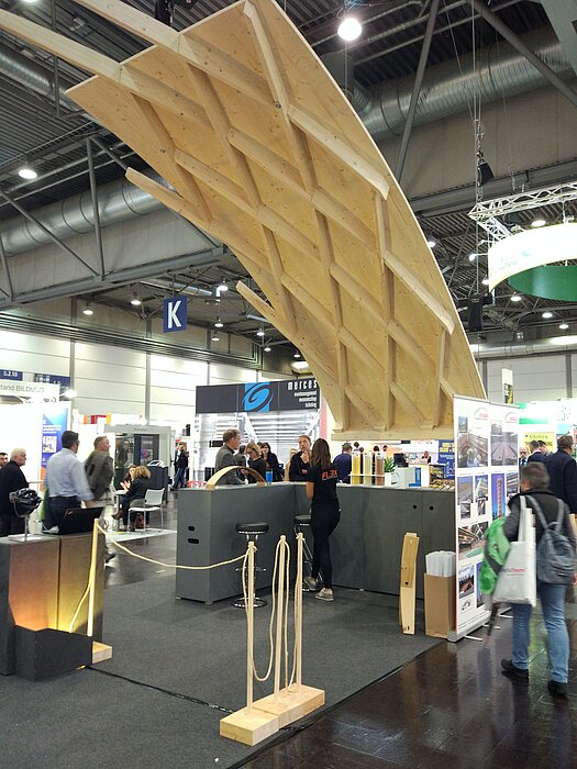 FLEX übernahm im Projekt die Generierung des parametrischen Geometriemodells und die Formulierung eines konsistenten Datenübergabemodells zur Verwendung in der statischen Berechnung, sowie in der CNC-gesteuerten Fertigung der Lamellen und Segmente. Darüber hinaus plante, organisierte und wertete FLEX Versuche zur Überprüfung der Rechenergebnisse und zur Sicherstellung der Tragfähigkeit der Dachsegmente aus. In enger Zusammenarbeit mit den Projektpartnern wurden Strukturvarianten, Füge- und Verbunddetails sowie Fertigungs- und Montageabläufe analysiert, prototypisch umgesetzt und im Hinblick auf Präzision, Handhabbarkeit und Wirtschaftlichkeit bewertet.
