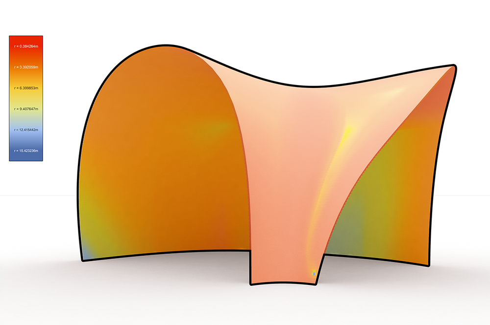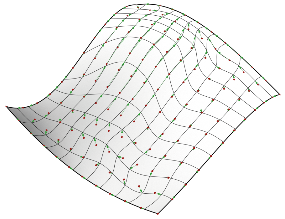 Zum Zwecke der Segmentierung wurden unterschiedliche Geometrien von ebenen über einfach gekrümmte bis hin zu doppelt gekrümmten Formen analysiert und ausgewertet. Aufgrund der im vorliegenden Kontext nur bedingt brauchbaren Aussagekraft konventioneller Krümmungswerte war eine parametrische Analyse bzw. Bearbeitung beliebiger Strukturgeometrien zunächst nur bedingt möglich.