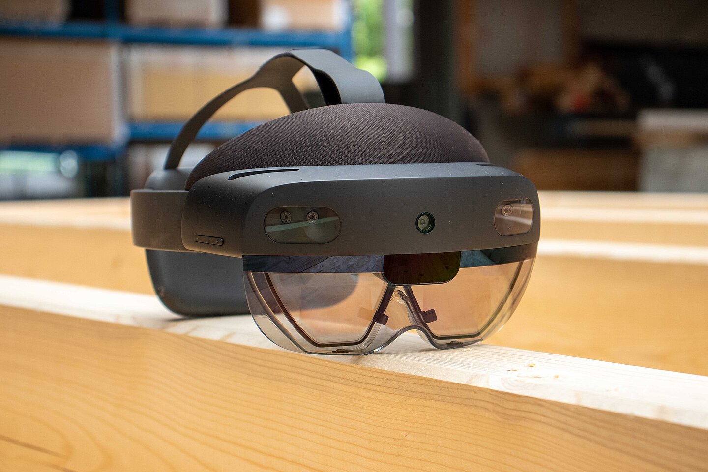 Hololens2 on the stud frame of a timber frame construction, © FLEX@HTWK Leipzig, Max Höhne