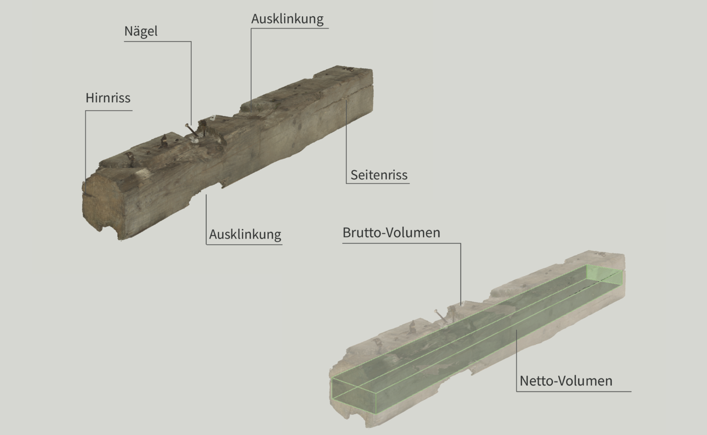 Ermittlung des wiederverwendbaren Querschnitts innerhalb des 3D gescannten Bauteils © FLEX@HTWK Leipzig, Luisa Sander