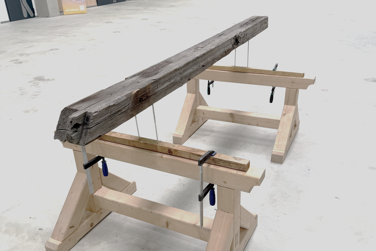 Versuchsaufbau für den 3D-Scan von Altholzbalken © FLEX@HTWK Leipzig, Luisa Sander