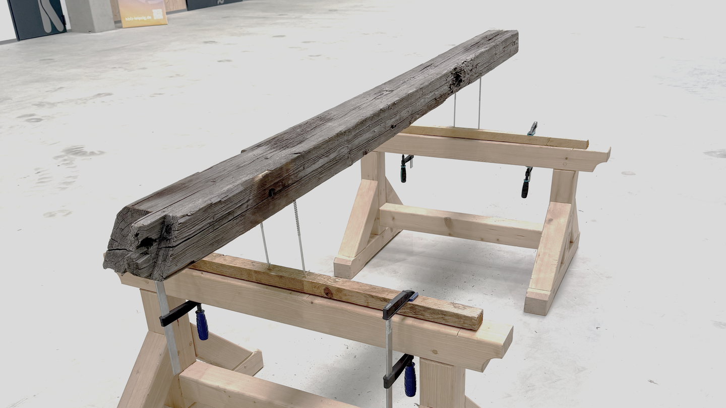 In Germany, between 7 and 8 million tonnes of waste wood are produced every year. The greatest potential for reuse, at approx. 32.6% (2.4 million tonnes), is the waste wood (from roof trusses, ceiling beams, etc.) from construction and demolition work (Döring and Mantau, 2018). Currently, only around 20 % of waste wood in Germany is utilised as material, with a share of approx. 48 % in chipboard. After the first utilisation phase, the remaining proportion is currently mostly sent directly for so-called "energy recovery".
