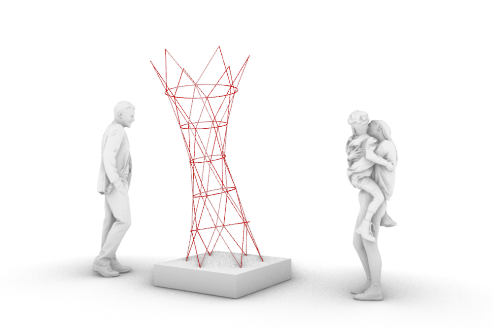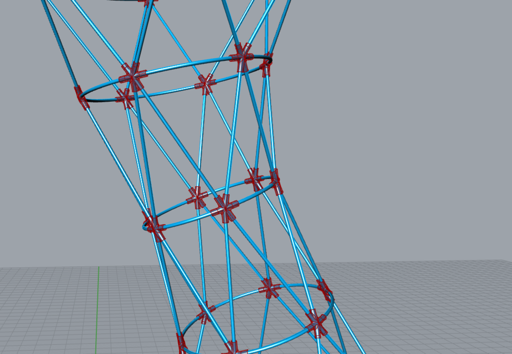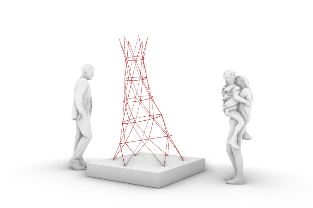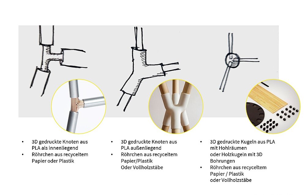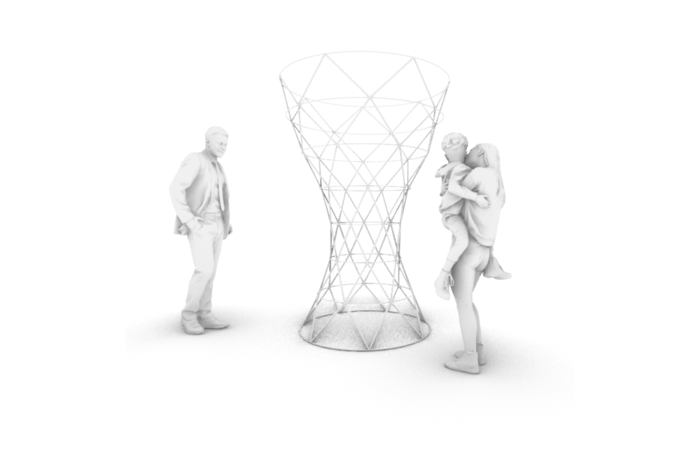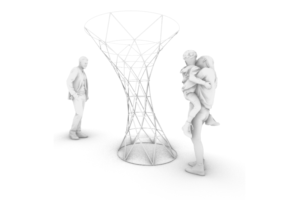 Der Entwurf spiegelt das große nationale Netzwerk des Vereins wieder. Das Stabwerk, welches durch 3D gedruckte Knoten verbunden wird, verkörpert damit einen Leuchtturm für den VDI, welcher auf Messen die Aufmerksamkeit auf sich zieht.