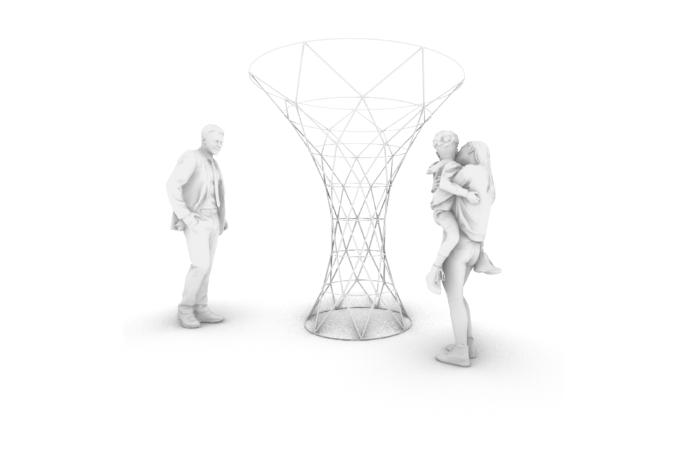 Die leichte Stabwerkkonstruktion ist komplex und muss daher parametrisch entwickelt werden. Gleichzeitig soll sie aber auch für jede Person schnell montierbar sein. Im Kontext der Potenziale additiver Fertigungsverfahren wird die Umsetzung der Turmstruktur bautechnologisch neu gedacht. Hierbei sollen nur nachhaltige, rezyklierbare Materialien verwendet werden. Die Form wird parametrisch generiert und bleibt daher im Entwurf flexibel und anpassbar an verschiedene Gegebenheiten. Das Stabwerk wird mit additiv gefertigten Knoten zusammengesetzt. Somit können individuelle Formgebungen einfach realisiert werden. Mit diesem Entwurfsansatz kann minimaler Materialeinsatz im Zusammenspiel mit hoher Gestaltungsqualität umgesetzt werden.