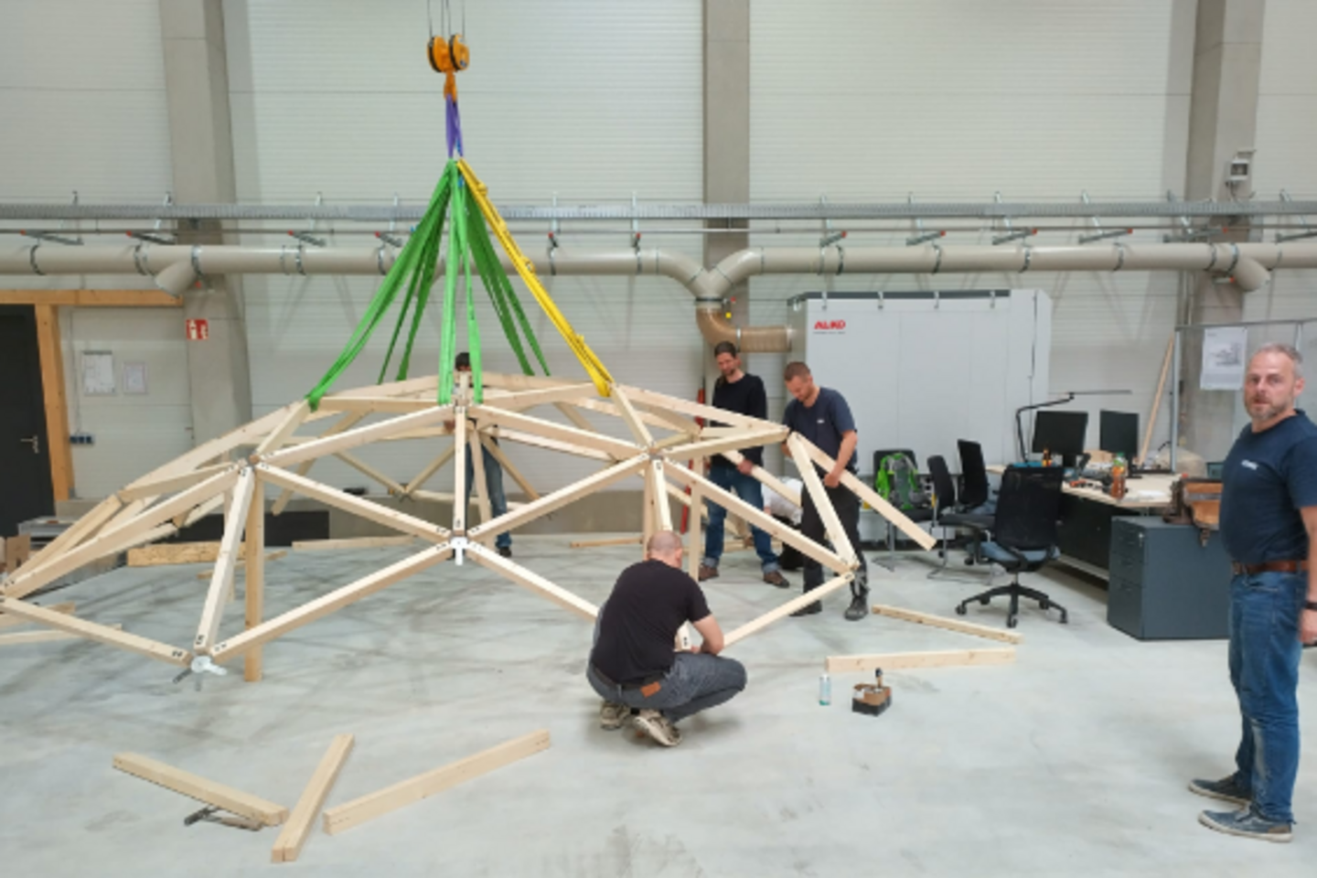 Aufbau des projection.DOME durch Mitarbeiter der Forschungsgruppe FLEX im HBFZ © FLEX@HTWK Leipzig, Marius Zwigart