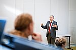Die 3. Session fokussierte sich auf nachhaltige Geotechnik für die Stadt der Zukunft und die Rolle des Monitorings von klimarelevanten Daten, wie es beispielsweise die HTWK-Geotechniker und Elektroingenieure gemeinsam in einem Vortrag zur datengestützten Bodencharakterisierung darstellten. Eingeleitet wurde die Session von Keynote-Speaker Prof. Thomas Auer von der Technischen Universität München, der die Potenziale des Untergrunds bei der Gestaltung von urbanen Räumen aufzeigte. Abschließend wurden innovative Infrastrukturprojekte vorgestellt.